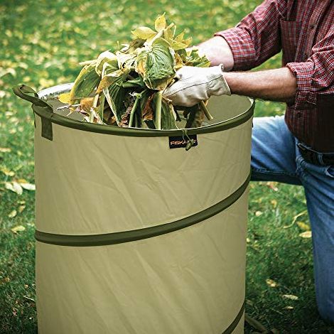 Fiskars Collapsible Gardening Bag A Space-Saving Way to Haul Yard Waste.Leaves and twigs can easily take over your garden, covering up all of your hard work. Put an end to the cycle and transfer that garbage out of your garden with this lightweight and durable 30-gallon bag. (It also makes a handy catch-all for sports equipment!)Leaves and twigs can easily take over your garden.