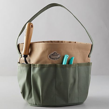 Terrain Canvas Garden Utility Bag A Stylish Garden Bag.This sturdy bag will tote all the tools you need for gardening. The eight outside compartments keep tools organized and the one large one in the middle make hauling things easier. And the go-with-anything colors don't hurt, either!This sturdy bag will tote all the tools you need for gardening. The eight outside compartments keep tools organized.